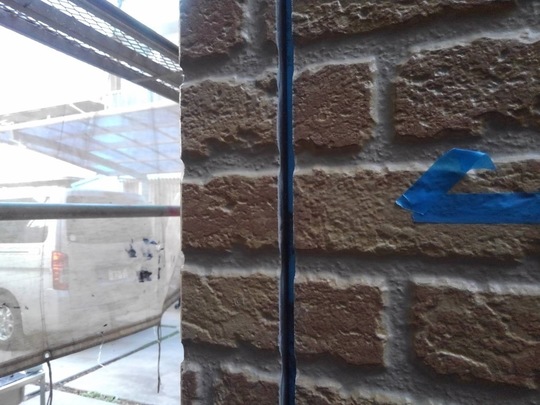 サイディング目地のシーリング材が外れている写真です。この出隅コーナー目地は建築時のシーリング作業でプライマー(接着剤)の施工が甘いと思われます。