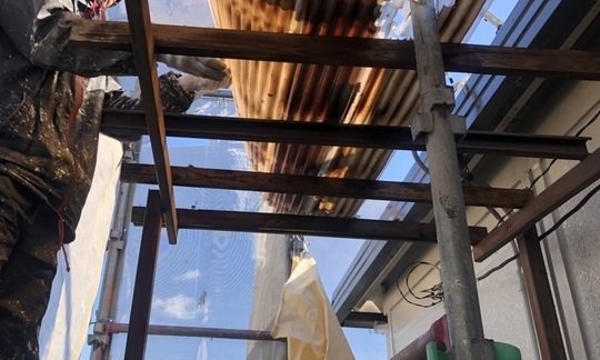 この鉄階段は波板を張替え・アクリル風除けを新調します。