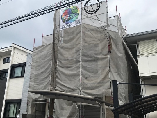 本日14日は屋根・外壁の高圧洗浄作業を行いました。
