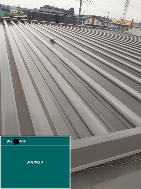 屋根中塗り(シリコンルーフⅡ:日本ペイント)です。