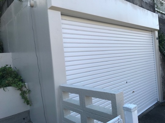 塗装工事前のガレージシャッターです。 汚れが目立ちます。