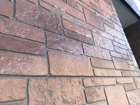 外壁塗装工事の現場です、本日は外壁クリヤー塗装の様子です。