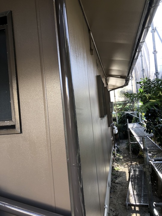 その後、掃除ともう一度見直し、塀塗装・波板張替・ぬれ縁木部塗装という作業で完成です。