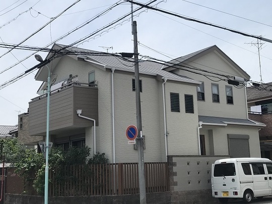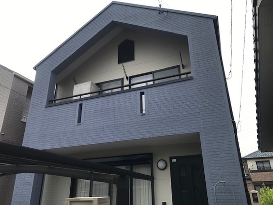 塗装完成写真 屋根と2階外壁にガイナを塗装