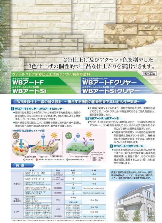 WB多彩模様仕上げは、塗料メーカーのスズカファイン株式会社の特許工法です。
