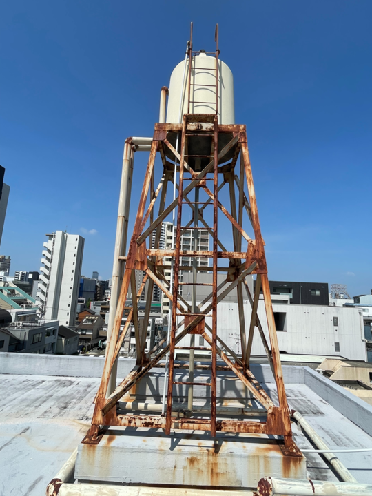貯水タンク・鉄骨類も塗装します。